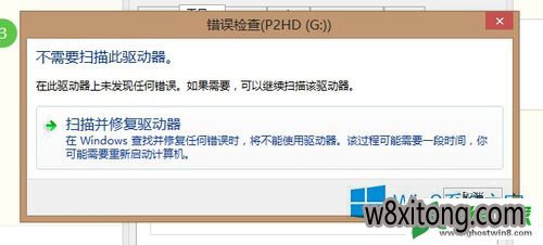 4、操作上述步骤,会弹出一个确认框,选择“扫描并修复驱动器”。