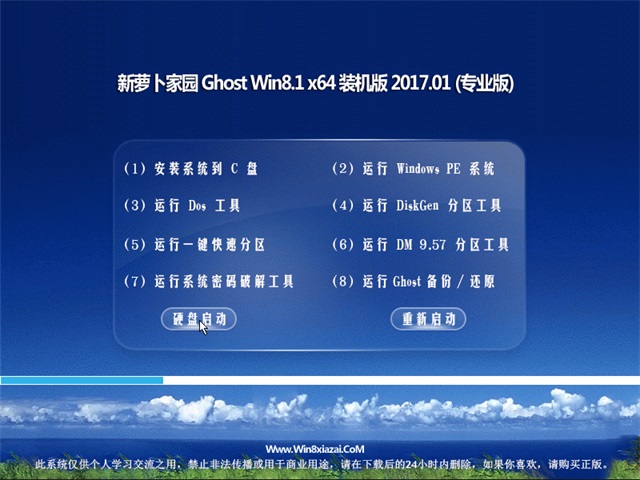 新萝卜家园Ghost Win8.1x64位装机版V2017.01版本以系统稳定为第一制作要点,收集市场常用硬件驱动程序。新萝卜