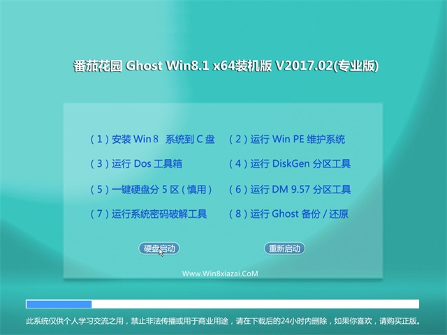 番茄花园Win8.1x64位装机版版权属各自产权人所有,只用于个人封装技术研究交流使用,不得用于商业用途,且本系统制作者不承担任何技术及版权问题,请在试用后24小时内删除。如果您对本系统有任何意见和建议,欢迎到论坛反馈,请购买正版Windows操作系统软件!