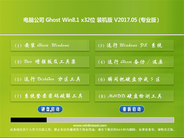 电脑公司Win8.1x32位装机版系统仅用于进行演示基于万能GHOST的快速部署技术,供装机维护技术人员参考,我们不承担任何技术及版权问题,且不对任何资源负法律责任。所有资源请在下载后24小时内删除。如果您觉得满意,请购买正版 !!!