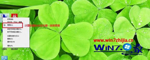 4、在桌面上找到“计算机”图片,右键选中“管理”;