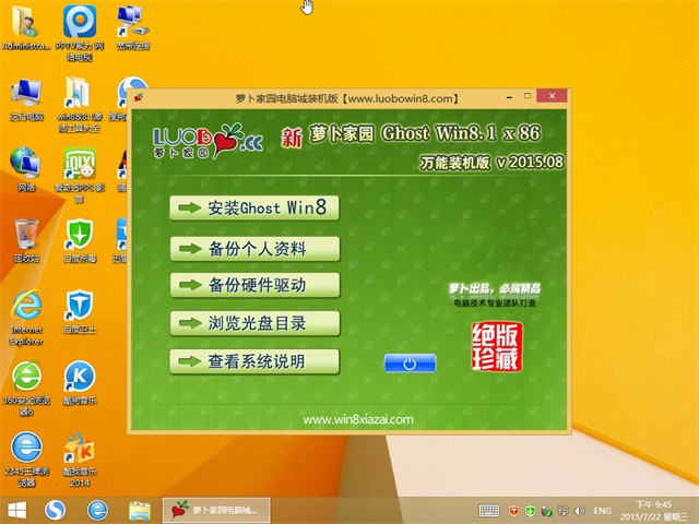 新萝卜家园(XLBJY) Ghost Win8.1 x86(32位) 万能装机版 V2015.08