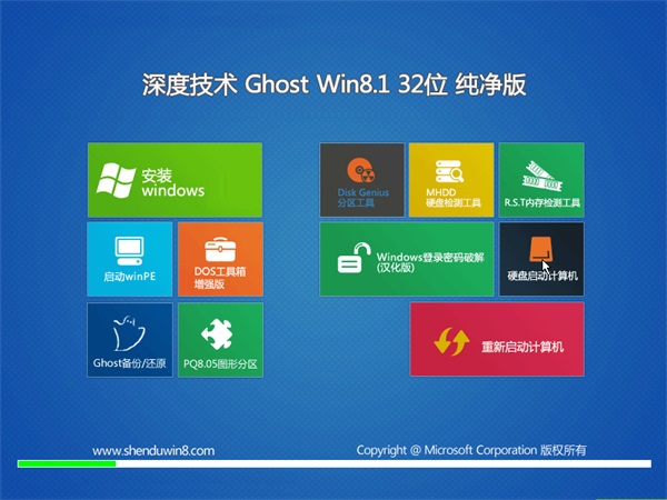 深度技术Ghost W8.1 32位 纯净版2016年06月受到用户的青睐,便是因为该系统具有更加稳定,更加人性化,更加安全的设置!集成了自2016年流行的各种硬件驱动,首次进入系统即全部硬件已安装完毕。通过数台不同硬件型号计算机测试安装均无蓝屏现象,硬件完美驱动,系统经过优化,启动服务经过仔细筛选,确保优化的同时保证系统的稳定内存消耗低。实用,反应迅速。在不影响大多数软件和硬件运行的前提下,已经尽可能关闭非必要服务,未经数字签名的驱动可以免去人工确认,使这些驱动在进桌面之前就能自动安装好!