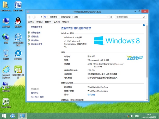 雨林木风GHOST W8.1 32位 专业版 V2016.07