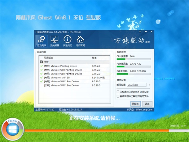 雨林木风GHOST W8.1 32位 专业版 V2016.07系统支持DOS、Windows下一键全自动快速备份/恢复系统,备份维护轻松无忧。加快菜单显示速度,启用DMA传输模式。系统集成VB、VC++ 2005\2008运行库支持文件,确保绿色软件均能正常运行。安装过程自动删除各分区下的autorun病毒。首次登陆桌面,自动判断和执行清理目标机器残留病毒信息,杜绝病毒残留。严格查杀系统的木马与插件,确保系统纯净无毒。支持加入管理网络(Domain Join)、高级网络备份等数据保护功能、位置感知打印技术。优化网上购物支付安全设置。清除所有多余启动项和桌面右键菜单。修改注册表减少预读取、减少进度条等待时间。开机、关机声音换成清脆悦耳的声音。系统格式为NTFS,更好的支持各类大型游戏。华丽的界面、精美的主题、稳定的系统、流畅 的速度,适合各种台式机,同时也适合笔记本安装,欢迎大家下载使用。