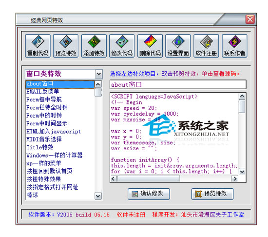 经典网页特效下载 〖经典网页特效〗软件是一个网页制作辅助软件,软件里面收集的网页特效多、新、全、酷。所有特效及特效预览仅在同一窗体之 中,所见即所得,使用简单方便,软件绿.....