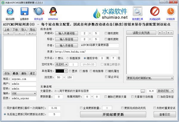 水淼·ASPCMS站群文章更新器 V1.0.0.3 绿色版