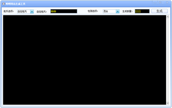 哔哔网名生成工具可自动批量生成网名!打开软件后,首先设置随即或自定义方式,设置好数量,点击生成,软件就会自动批量生成网名! v2.0更新内容: 1.新增皮肤 2.更改软件图标 3.更.....