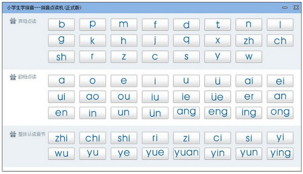 拼音点读机是一款小学生学拼音软件,包括声母、韵母和整体认读音节的学习。市面上同类软件大都为视频格式,碰上哪个不懂发音,得来回拉动进度条寻找,操作性不强,本软件采用点读的.....
