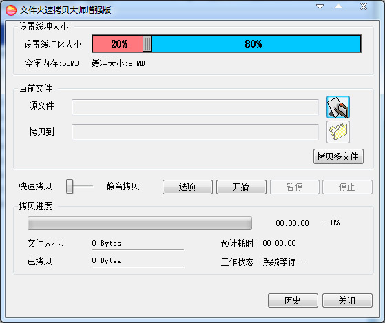 文件火速拷贝大师增强版一款强大的文件复制工具。复制文件速度超快、人工智能度高特点,能大大地简化平常的文件复制操作。具有较高的文件读取及纠错能力,能读取软盘上损坏的文件,.....