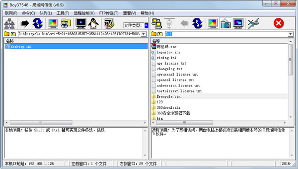 3.假如有两台电脑分别安装了windows7和XP系统,很多人可能不会设置“网上邻居”进行互访,或者说共享文件夹里面没有你想要的文件,还要经常修改共享目录,现在《局域网信使》可以跨越两种操作系统平台,直接传输任何文件夹。