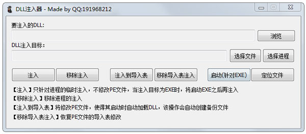 泉贸DLL注入器是一款支持直接静态修改IAT导入表及传统动态注入方式的注入工。它能够在用户不知道缺少哪个DLL文件的情况下,快速的进行文件的添加和修复!如果你在打开某个程序或者游戏的时候,突然弹出缺少XXX.dll文件的话,不妨使用这款软件进行修复吧!