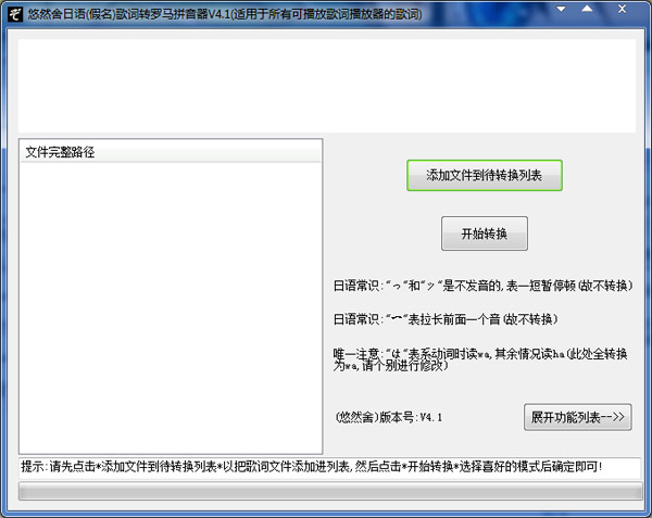 悠然舍日语(假名)歌词转罗马拼音器 V4.1