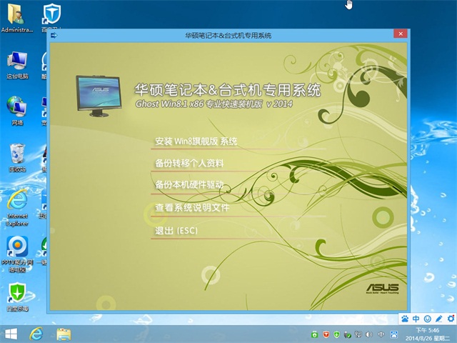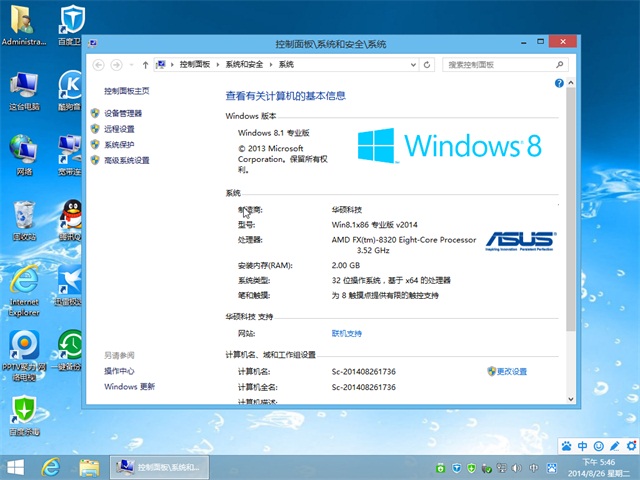【2014.09】华硕专用GhostW8.1x86(32位)专业装机版系统
