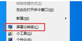 1、将鼠标放到空白处,右键选中“屏幕分辨率”选项。如下图: