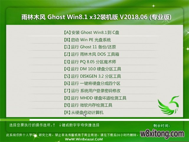 雨林木风Win8.1x32位装机版系统仅用于进行演示基于万能GHOST的快速部署技术,供装机维护技术人员参考,我们不承担任何技术及版权问题,且不对任何资源负法律责任。所有资源请在下载后24小时内删除。如果您觉得满意,请购买正版 !!!