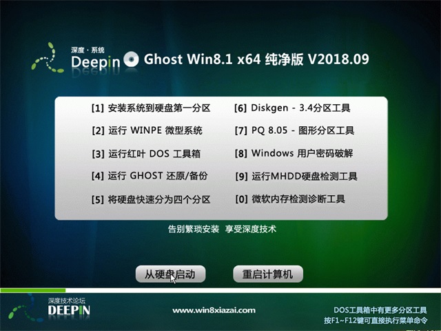 三、深度技术Win8.1x64位纯净版V2018.09版本安装指引: