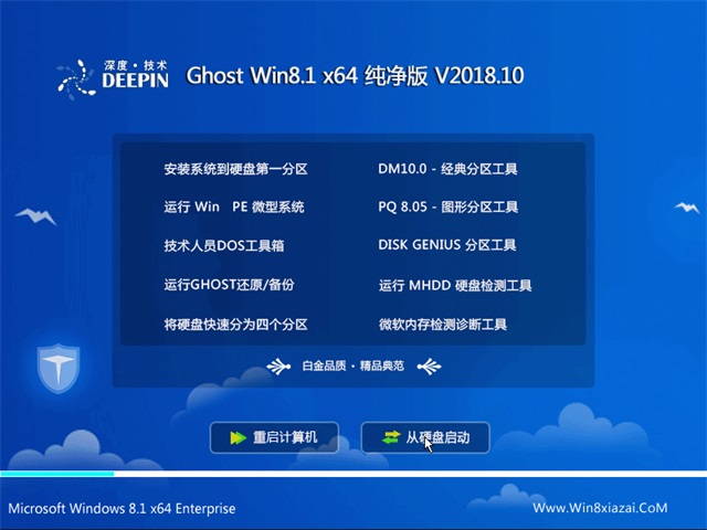 深度技术Ghost Win8.1x64位纯净版V2018.10版本通过数台不同硬件型号计算机测试安装均无蓝屏现象,深度技术Win8.1x64位纯净版集成最全面的硬件驱动,精心挑选的系统维护工具,加上电脑公司独有人性化的设计,深度技术Win8.1x64位纯净版V2018.10版本经严格查杀:无木马程序、无病毒、无流氓软件及相关插件,系统经过优化,启动服务经过仔细筛选,深度技术Win8.1x64位纯净版确保优化的同时保证系统的稳定,智能判断并全静默安装 AMD双核补丁及驱动优化程序,让CPU发挥更强性能,更稳定!