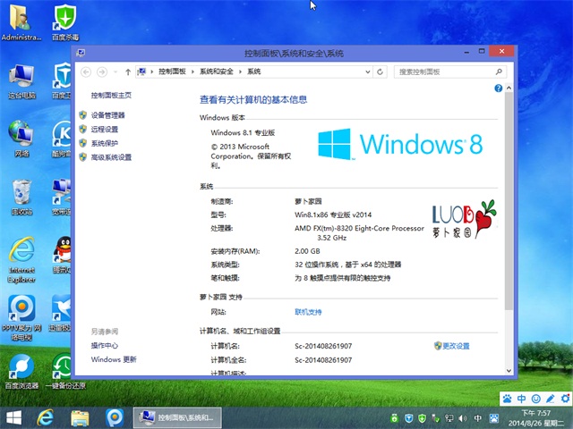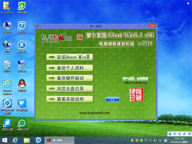 【2014.09】萝卜家园Ghost W8.1x86(32位)电脑城极速装机版系统