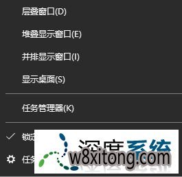 1、在任务栏上点击右键,选中【任务栏设置】;