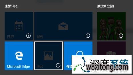在深度win8 秋季创意者更新版 正式版操作系统中有网友系统自带的大多应用无法运行的现象,除了Edge、小娜能用,在应用图片上显示着一个感叹号,应用图片上的颜色被覆上了一层黑色打开后无法运行,如下图所示: