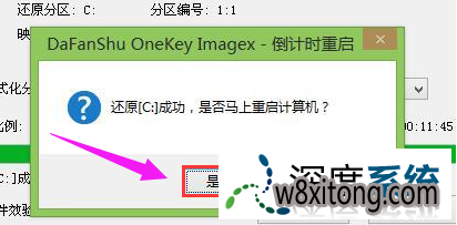 接着会跳出询问是不执行还原操作,点击“确定”开始执行