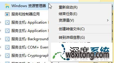 2、打开任务管理器以后,在进程选卡下找到 windows 资源管理器 ,咱们可以按下 w 键就可以快速找到;