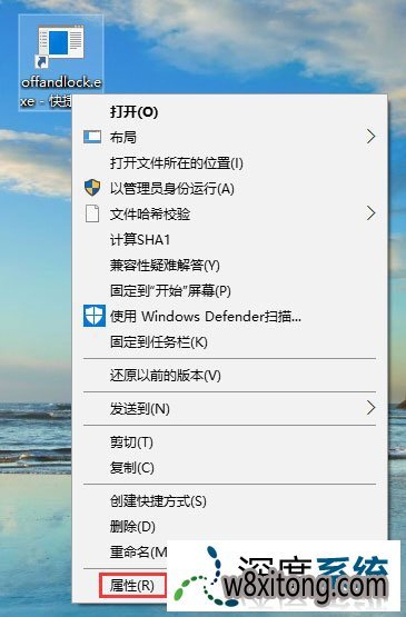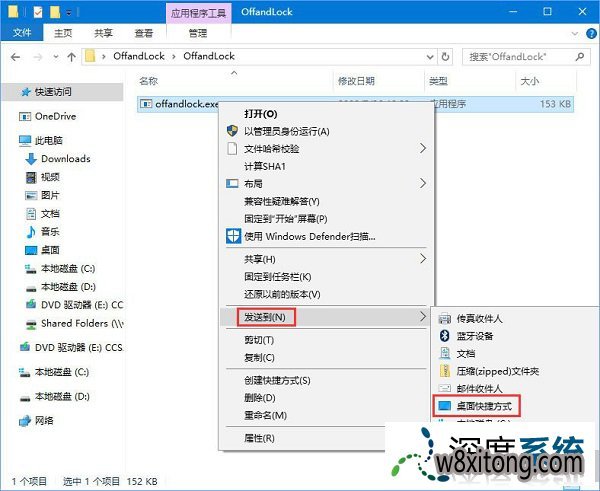 3、如果你想使用更方便,那么可以把offandlock.exe直接放在桌面上,或者在offandlock.exe打开右键,选中“发送到 - 桌面快捷方式”。