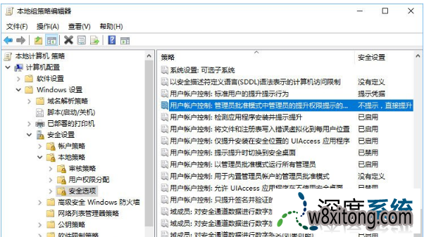 计算机配置->windows设置->安全设置->本地策略->安全选项->网友帐户控制: