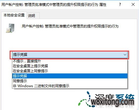 管理审批模式下管理员的提高提示行为->修改成“提示凭据”