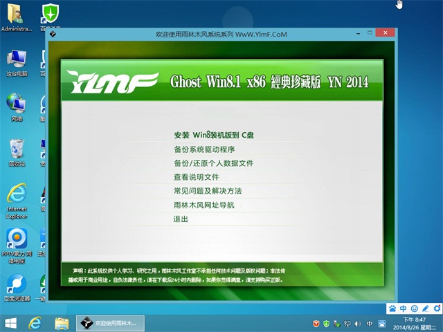 【2014.09】雨林木风Ghost W8.1x86金典珍藏版(32位)系统