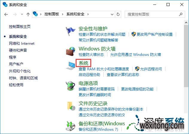 在“系统和安全”下选中“系统”并打开进入到“系统”菜单。