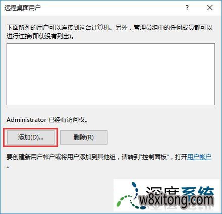 在跳出的窗口中打开“添加”按钮来添加所要连接远程桌面的网友计算机名称