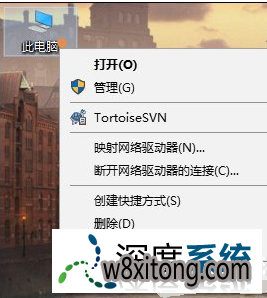 选中桌面上的“此电脑”→右键→属性