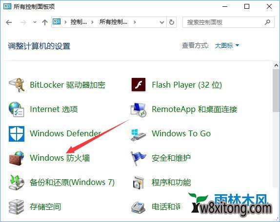 1、使用快捷键windows+pause打开系统,打开所有控制面板项的windows防火墙。