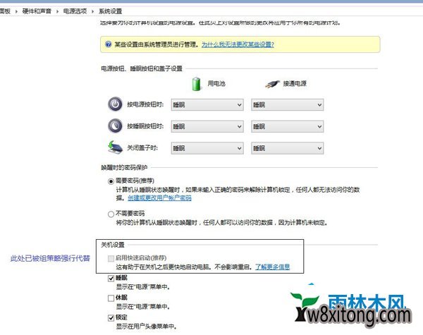 2、win8快速启动不能正常开启怎样办?打开电源管理,查看策略组中的设置已替代电源管理中的快速启动选项。