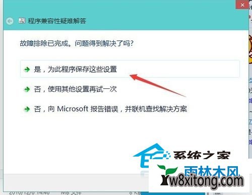 2、win8应用兼容性在哪设置?打开测试程序,下一步,选中是,为此程序保存这些设置,等待系统的修复成功,正常的运行程序。