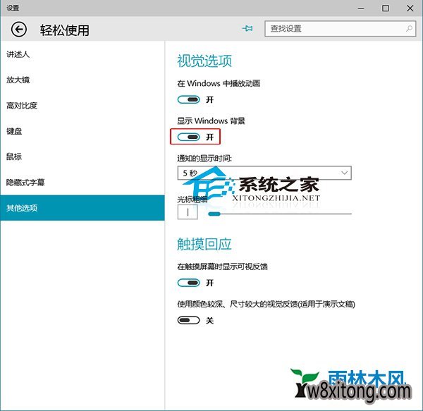 2.如下图所示,将显示windows背景打开