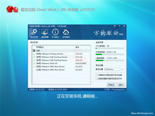 番茄花园Ghost Win8.1x86位纯净版v2019.01版本通过万能ghost封装工具进行封装而成的克隆版系统,系统经过优化,启动服务经过仔细筛选,确保优化的同时保证系统的稳定。集成最常用的办公,娱乐,维护和美化工具,常用软件一站到位。