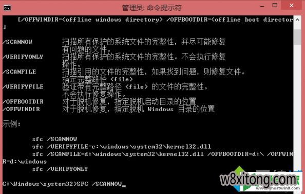 以命令管理员方式进入命令提示符窗口,然后运行sFC /sCAnnow命令进行系统修复。该命令会自动修复遭到损坏的系统文件,让产生错误的系统功能恢复正常。