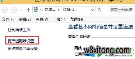 2.在打开的属性窗口中,在左侧菜单栏中点击“更改适配器设置”。