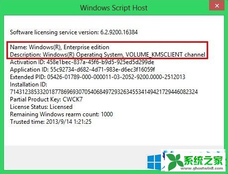 显示:操作系统版本、部分产品密钥、许可证状态、windows系统密钥类型。