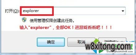 5、然后在任务管理器中点击“文件”,选择“运行新任务”,输入“explorer”,现在进入游戏就没有黑边了。