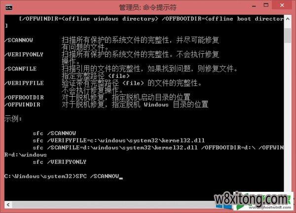 以命令管理员方式进入命令提示符窗口,然后运行sFC /sCAnnow命令进行系统修复。该命令会自动修复遭到损坏的系统文件,让产生错误的系统功能恢复正常。