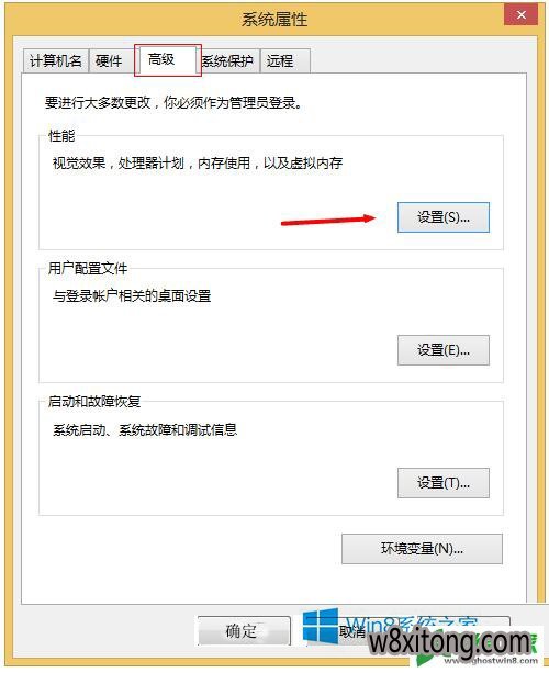 2、选择高级选项——设置(性能);