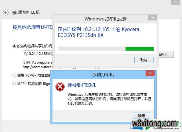 我了解到您遇到windows 8无法连接局域网打印机的问题。