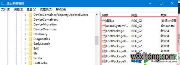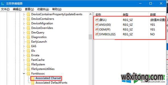 3、fontassoc键下有 “Associated Charset”和“Associated defaultFonts” 两个键。当出现汉字乱码时,这两个键中的内容就可能不正确甚至不完整。它们的正确内容应该;