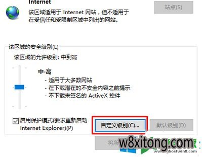 2、然后到安全选项卡下,点击“自定义级别”按钮;