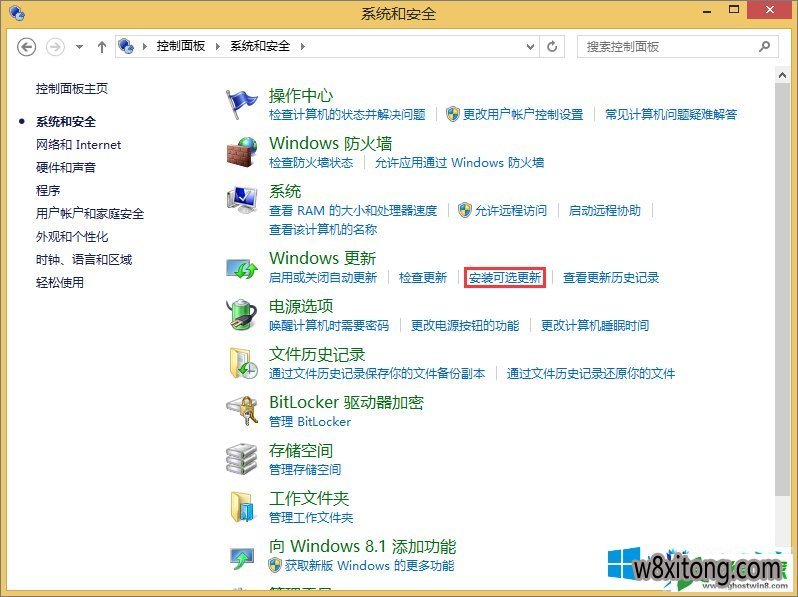 很多用户都喜欢在电脑上安装win8系统,但是有时候可能会遇到win8系统安装office2010一直失败的情况。最近有不少用户到本站咨询win8系统安装office2010一直失败的问题该怎么处理?虽然解决方法很简单,但是大部分用户不清楚win8系统安装office2010一直失败到底要如何搞定?其实步骤很简单,只需要 1、使用热键组合“win+x”调出快捷菜单,选择“控制面板”并进入,在控制面板的系统和安全中选择“windows 更新”下的“安装可选更新”; 2、点击进入以后;就ok了。本教程就给大家演示一下win8系统安装office2010一直失败详细的解决步骤:
