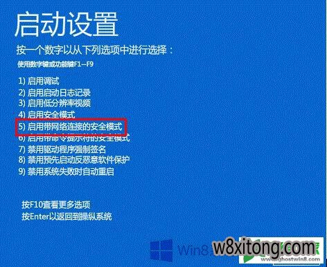 8、选择“5.启用带网络连接的安全模式”;